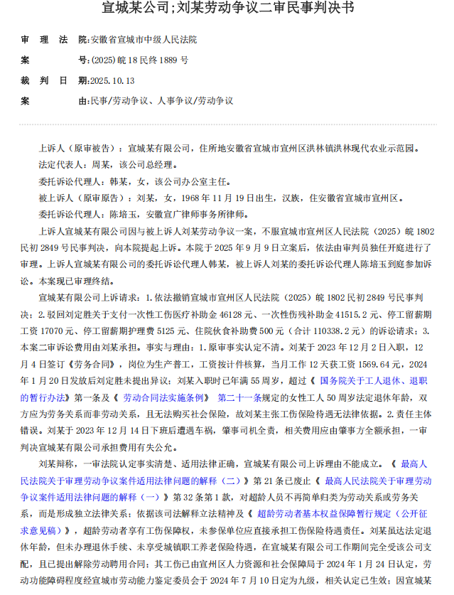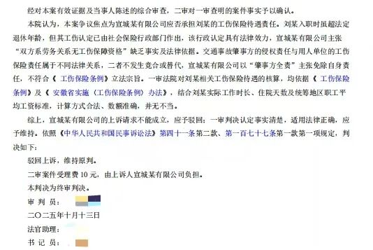 二审法院聚焦 “公司是否该承担工伤保险待遇责任” 这个核心争议点,给出了明确判决: