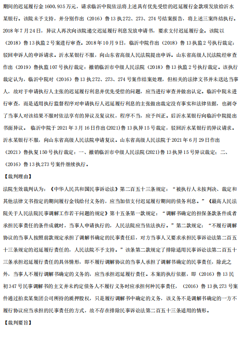 但银行认为,被执行人迟延履行,自己有权主张拍卖款优先受偿范围包含迟延履行期间的加倍债务利息,就此向法院提出异议、复议。案件经两级法院审理,最终高级人民法院撤销了原审法院的异议裁定,要求案件继续执行,支持了银行主张迟延履行加倍付息的诉求。